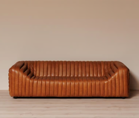 Elevate the look of your living space with our Luxury Tan Leather Sofa, a masterpiece of modern furniture design that blends sophistication with comfort. Crafted with premium quality genuine leather, this modern leather sofa is designed to bring both style and durability to your home or office. The sleek, low-profile silhouette paired with deep channel tufting gives this sofa a bold, contemporary character, making it an ideal centerpiece for any modern living room or premium interior design setup. Luxury Tan Leather Sofa – Premium Modern Design for Elegant Living Spaces