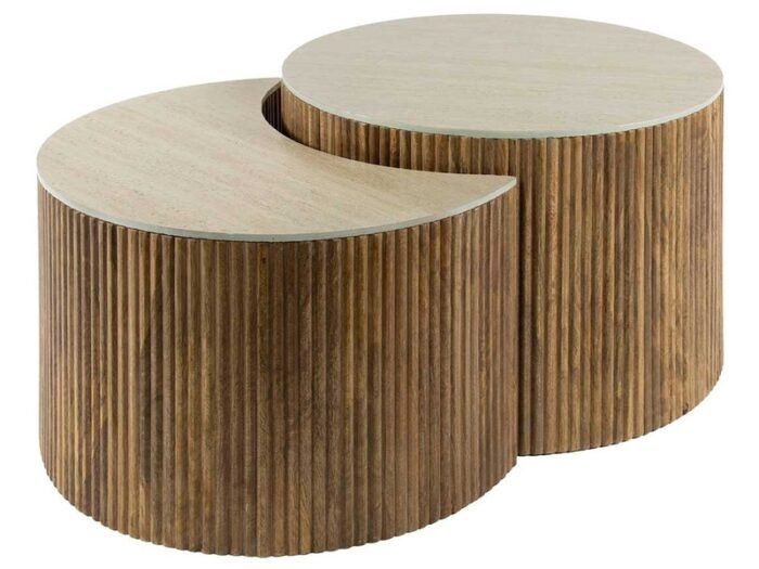 Issues de la collection Jade de Lisa Design, ces tables basses en bois de manguier et céramique effet travertin sont un choix durable, esthétique et fonctionnel, pensé pour embellir votre intérieur avec élégance et simplicité. lot de 2 tables basses gigognes Jade