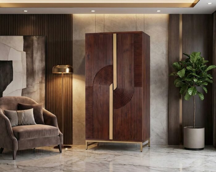 Doté de 2 portes spacieuses, ce meuble bar en bois de manguier offre un large espace de rangement pour organiser bouteilles, verres, carafes et accessoires essentiels. Sa conception verticale permet d’optimiser l’espace, ce qui en fait un choix idéal aussi bien pour un salon que pour une salle à manger ou une pièce dédiée au bar. Les patins antidérapants intégrés assurent une protection totale contre les rayures et empêchent tout déplacement involontaire sur les sols.