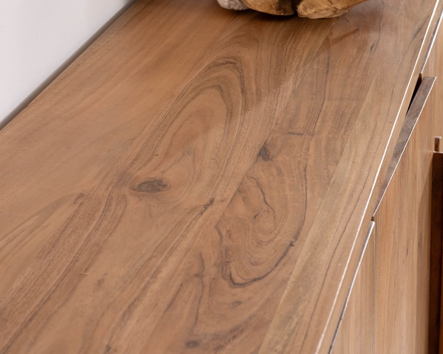 Polyvalent et élégant, ce meuble en acacia massif est idéal pour une salle à manger, un salon ou une entrée, apportant chaleur, fonctionnalité et style naturel à votre décoration.