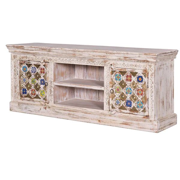 Fabriqué par des artisans respectueux des savoir-faire traditionnels, ce meuble télé en bois de manguier-28 se distingue par ses finitions soignées et son caractère ethnique affirmé. L’association subtile du bois naturel et des mosaïques faites main crée un équilibre parfait entre authenticité, élégance et originalité. Chaque détail est pensé pour faire de ce meuble une véritable pièce maîtresse de votre salon.