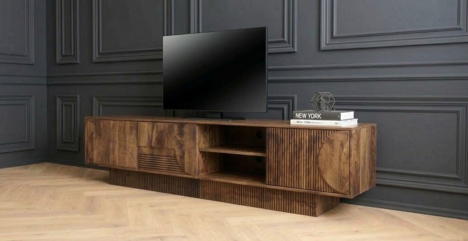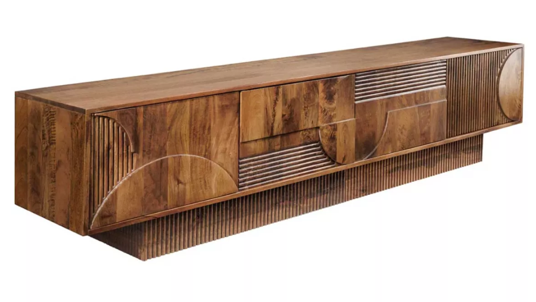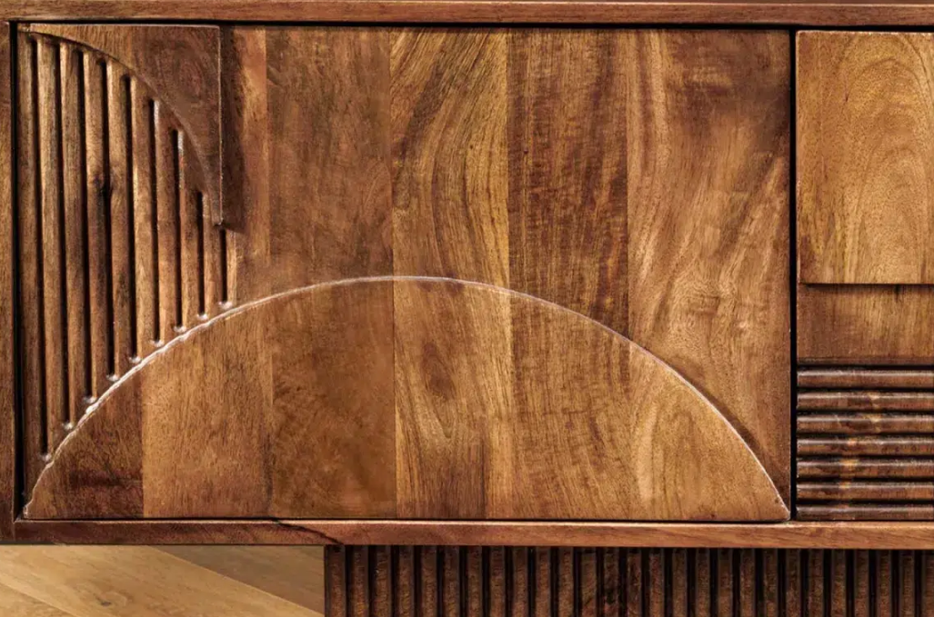 Meuble TV 200 cm end Maguire Massif Marron – Sculpté & Grand Rangement