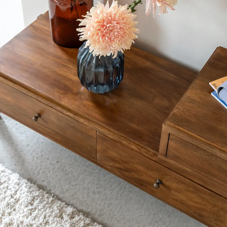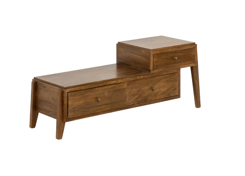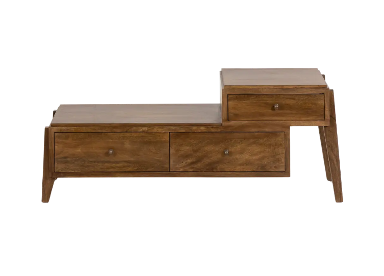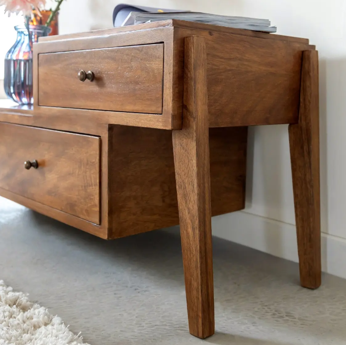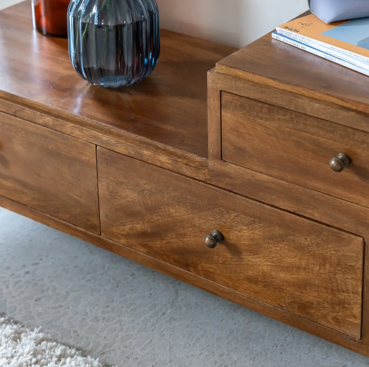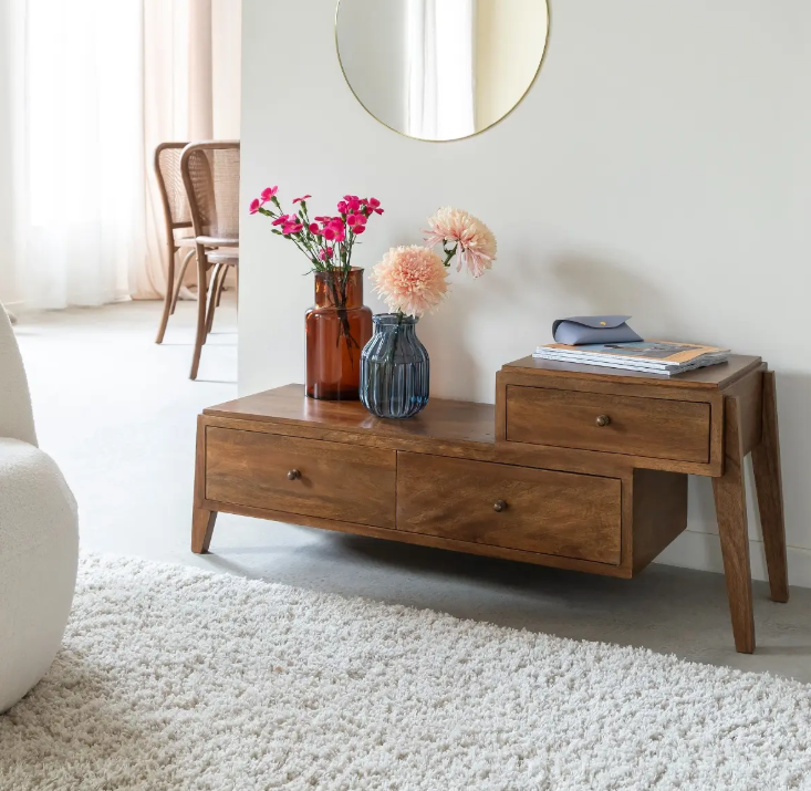 Meuble TV en Bois de Manguier-28 – Design Asymétrique et Élégance Naturelle