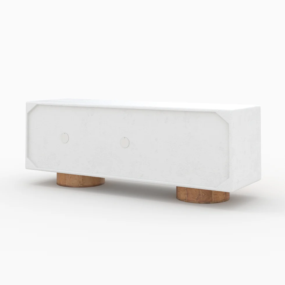 Transformez votre intérieur avec ce superbe meuble TV en bois et béton, une pièce unique qui allie modernité, élégance et caractère naturel. Conçu pour ceux qui recherchent un mobilier à la fois design et fonctionnel, ce meuble associe une structure en béton blanc lisse à des portes en bois massif, créant un contraste chaleureux et sophistiqué. Grâce à ses lignes arrondies et à ses finitions soignées, il apporte une touche contemporaine tout en conservant un aspect organique, idéal pour les intérieurs modernes, scandinaves ou minimalistes.