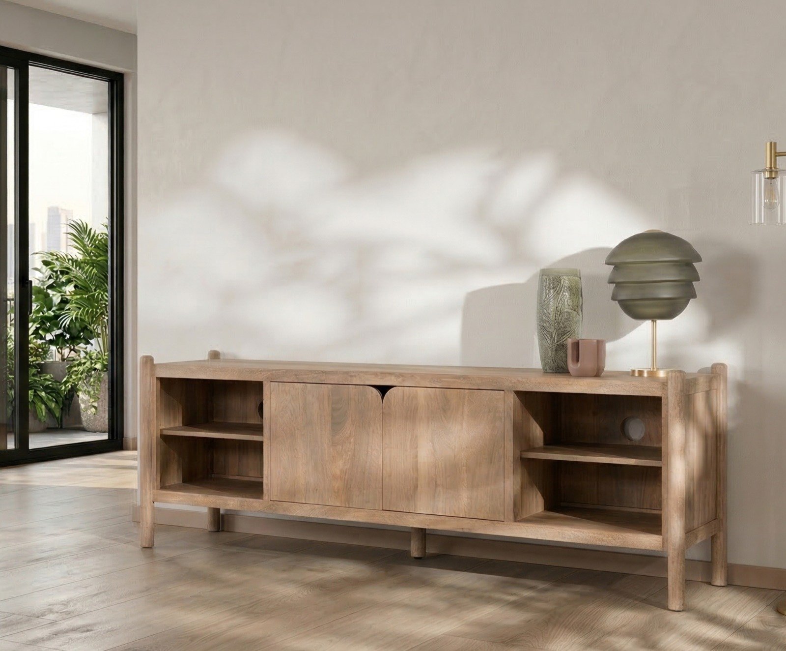 Meuble TV en manguier massif – design naturel et rangement fonctionnel