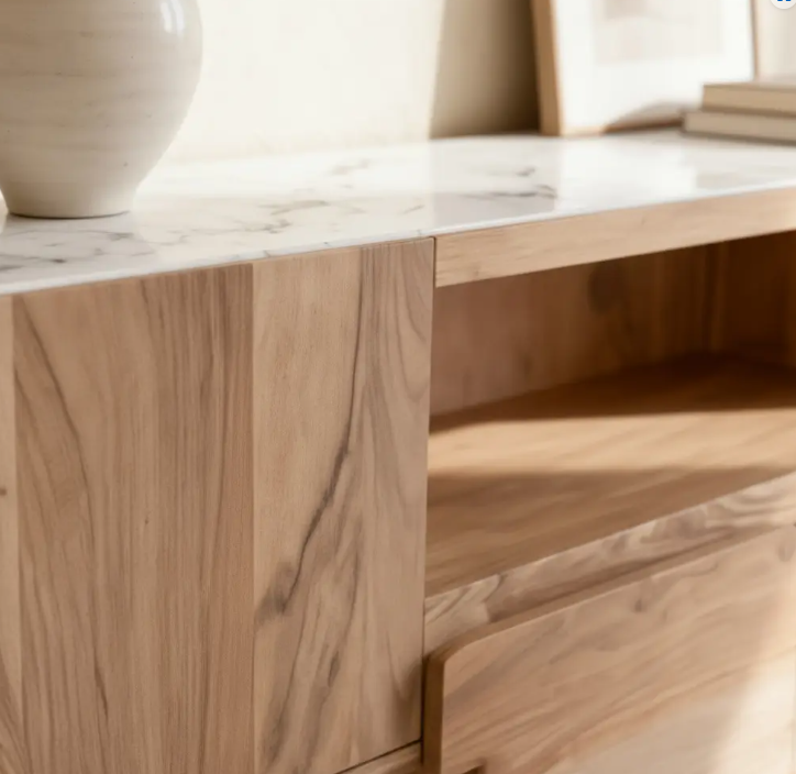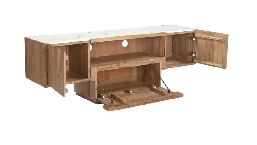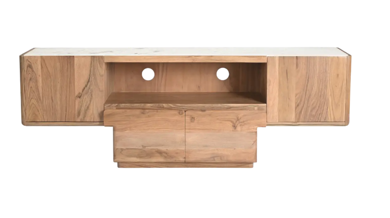 Solide, fonctionnel et visuellement remarquable, ce meuble TV en acacia et marbre allie durabilité et élégance, faisant de lui un élément incontournable pour transformer votre salon en un espace harmonieux, esthétique et parfaitement organisé.
