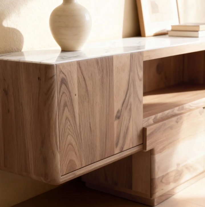 Meuble TV end T end Boi’s acacia et Marber – Design Moderne & Elegant