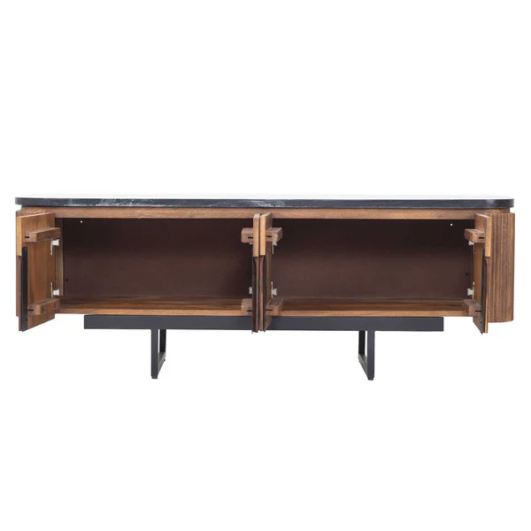 Ce Meuble TV Priti en marbre noir-23 est pensé pour maximiser le rangement et l’organisation. Les quatre portes spacieuses permettent de stocker vos équipements multimédias, câbles, accessoires et objets divers, tout en préservant une apparence propre et ordonnée. Grâce à sa conception fonctionnelle, ce meuble TV allie esthétique et utilité, faisant de lui un élément central dans votre salon.