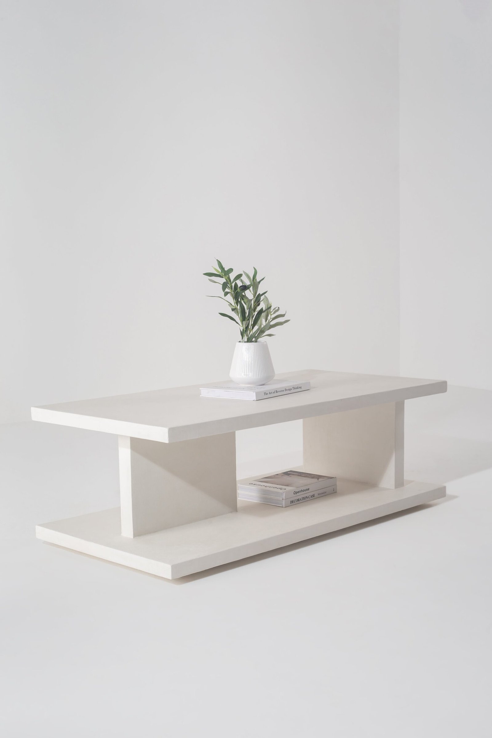 Finished in a soft off-white microconcrete tone, the tabletop highlights the table’s sculptural silhouette while maintaining a serene, neutral presence. The subtly textured surface adds visual depth and a tactile, stone-like feel, enhancing the table’s artisanal character. Whether styled with books, ceramics, or décor accents—or left beautifully unadorned—this Off White Microconcrete Coffee Table-22 elevates your living room with effortless sophistication.