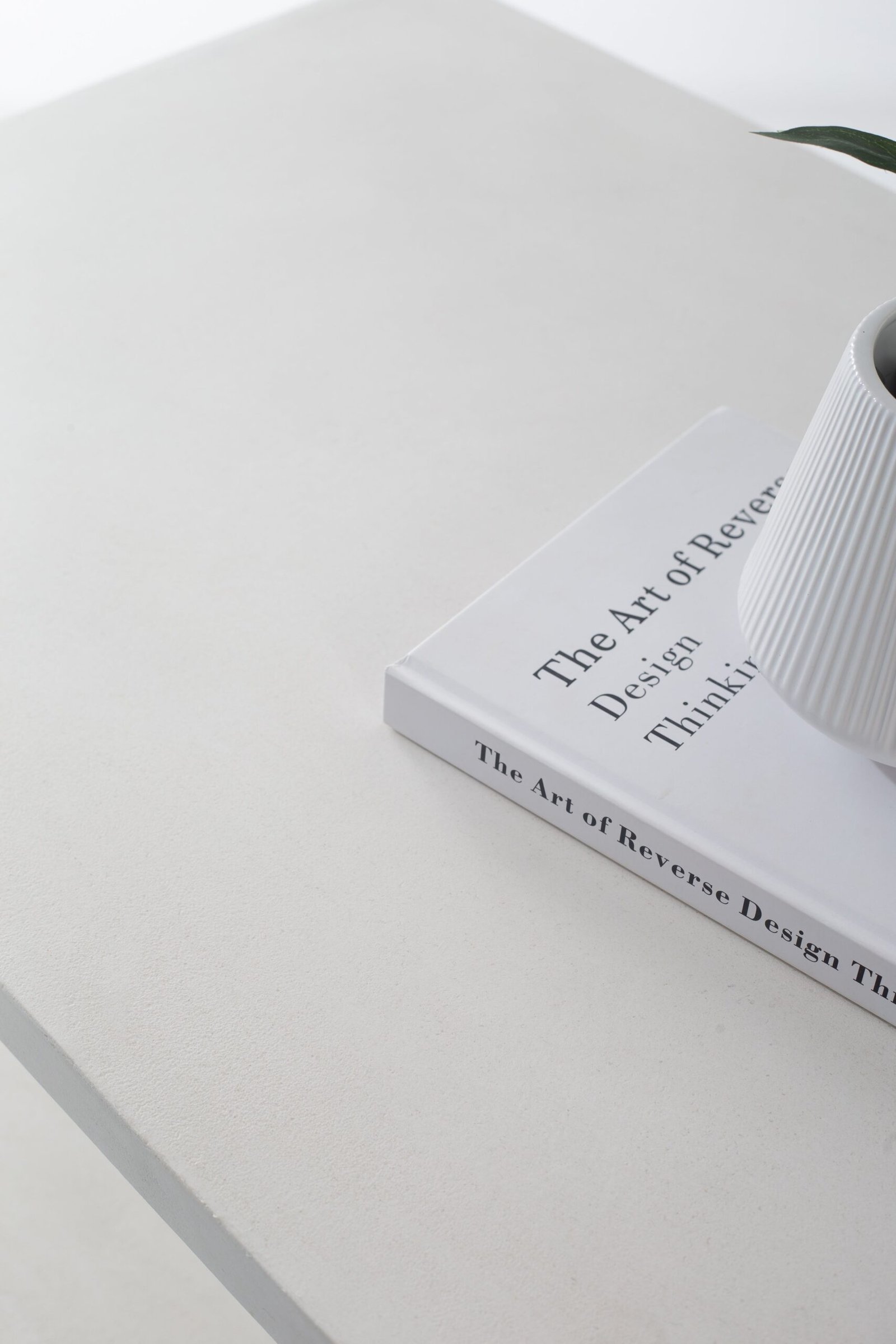 Each tabletop undergoes a meticulous 8-layer hand-coated microconcrete process, Off White Microconcrete Coffee Table-22 resulting in a distinctive surface that is highly resistant to scratches and designed for everyday use. As a handcrafted piece, natural variations in texture and finish may occur, adding uniqueness and authentic craftsmanship to every Off White Microconcrete Coffee Table.