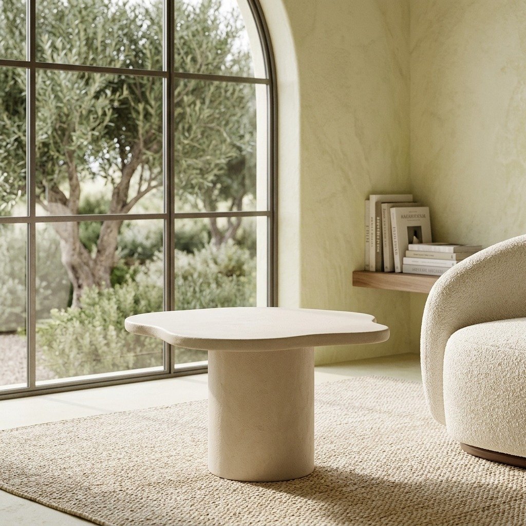 The organic silhouette gives the table an artful, curated feel, while the bold pedestal base grounds the design with confidence and stability. Its balanced proportions ensure visual harmony, making the table striking without overwhelming the space. The matte microconcrete texture adds quiet depth and tactile elegance, embodying understated luxury that suits contemporary, minimalist, and design-led homes.