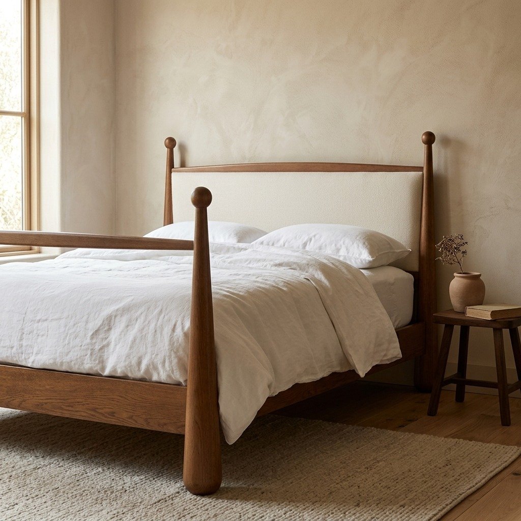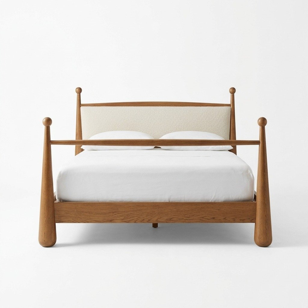 Mid-Century Solid Wood Designer Bed Frame with Sculpted Posts – Luxury Handmade Wooden Bed