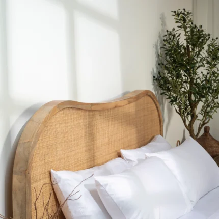 The wide woven rattan headboard enhances breathability and comfort while adding natural texture that brings a calming, organic feel to the room. This design fits effortlessly into neutral, earthy, boho-chic, Japandi, or contemporary interior styles.