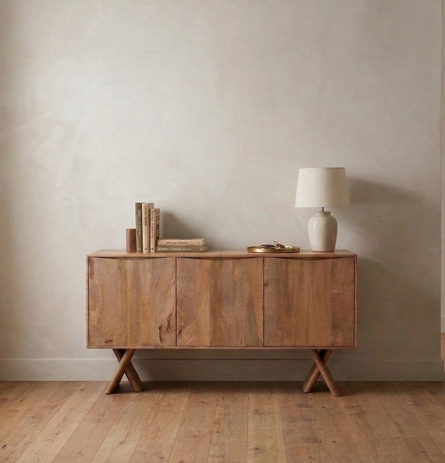 Designed with a minimalist silhouette and flush doors, the Novera Sideboard exudes modern elegance while offering a sleek, clutter-free aesthetic. Its architectural X-style angled legs add sculptural charm and provide sturdy support, making this piece both stylish and reliable for everyday use.