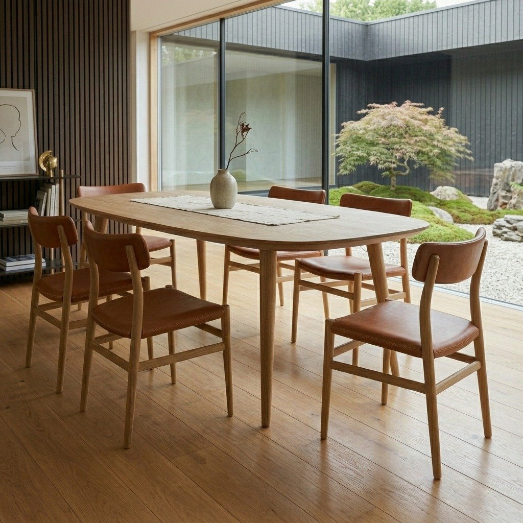 Inspired by Scandinavian design, it highlights the natural beauty of the wood and features a flawless finish. The smooth, rounded edges bring a refined touch, while its sturdy base ensures stability and durability over time. Perfect for both everyday dining and festive gatherings, this table will quickly become the focal point of your dining room.