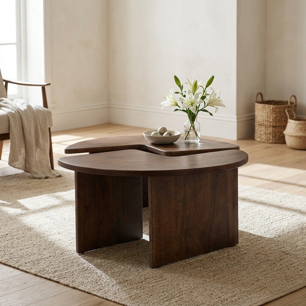 The table set is delivered unassembled for easy transport and comes with clear instructions for hassle-free setup. The wood is sourced from sustainably managed forests, reflecting a commitment to environmentally responsible craftsmanship that considers both people and the planet. PRITI 2-Piece Coffee Table