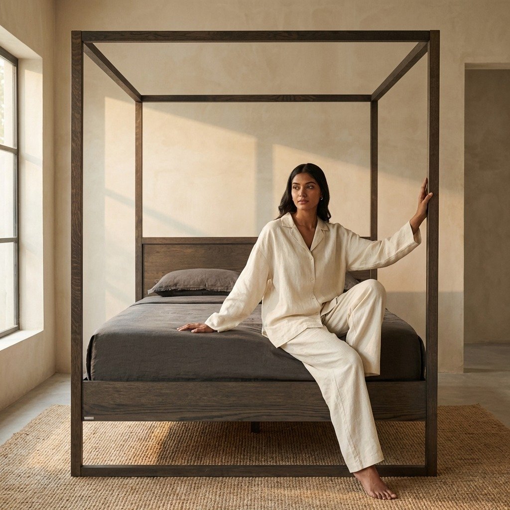 The PRITI 4-Poster Bed beautifully merges traditional grandeur with modern sensibility, creating a striking piece that serves as both a statement and a sanctuary in your bedroom. Here’s an enhanced version of the description: