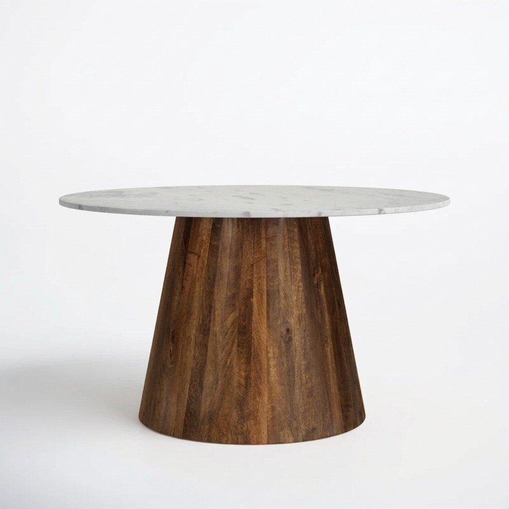 PRITI 48″ Round Marble Dining Table (Marble Top & Wooden Base)