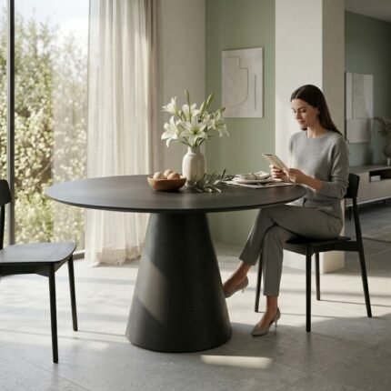 Carefully finished with a protective black coating, the wood surface is resistant to scratches and stains, ensuring that the table retains its beauty over time. The combination of wood and coated steel not only enhances the table’s sturdy appearance but also adds a contemporary flair that complements various interior styles. PRITI Black Dining Table (Solid Wood)