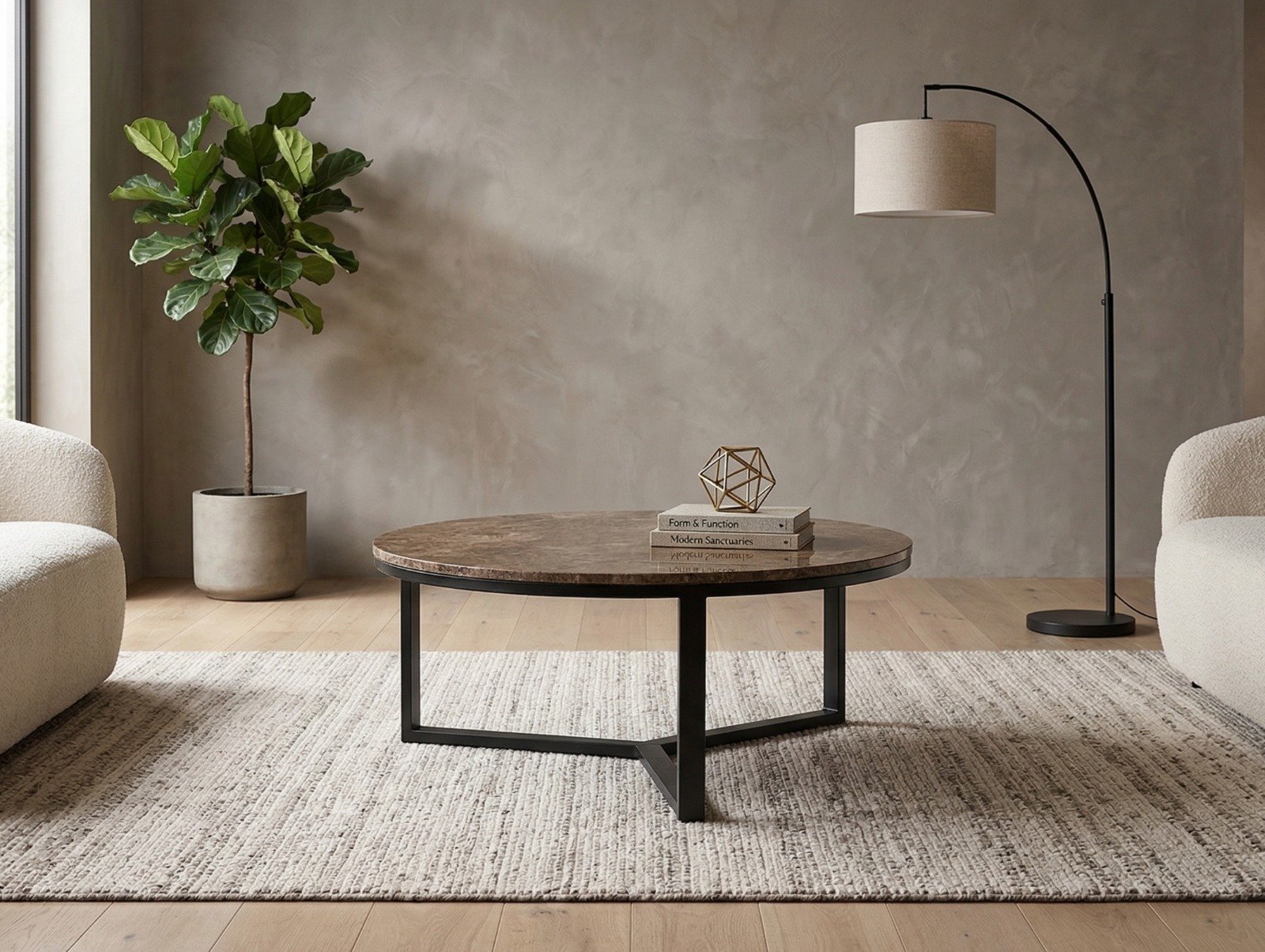 Complementing the organic beauty of the marble is the table’s sleek black steel base, which adds a modern, industrial touch. The base provides both stability and a minimalist aesthetic, ensuring the table integrates seamlessly into contemporary or even transitional interiors. The contrast between the warmth of the brown marble and the cool, clean lines of the steel creates a dynamic yet harmonious look, perfect for those who appreciate refined, high-quality materials.