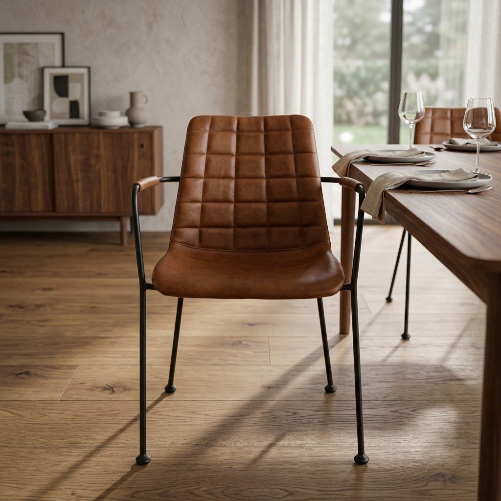 Comfort is at the heart of the PRITI Dining Chair With Metal Legs, with its plush, upholstered seat and backrest that invite long, leisurely meals. The matching upholstered armrests, available in both fabric and PU leather finishes, add a sense of warmth and coziness while offering additional support. These armrests seamlessly blend into the chair’s overall design, enhancing its streamlined silhouette.