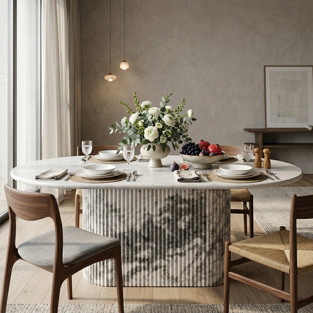 - Style: The PRITI Dining Table (White) embodies a minimalist and modern aesthetic. Its clean lines and simple form make it a versatile piece that can fit into various interior styles, including contemporary, transitional, or industrial. The emphasis on natural materials and straightforward design ensures it can blend seamlessly with different dining room themes.