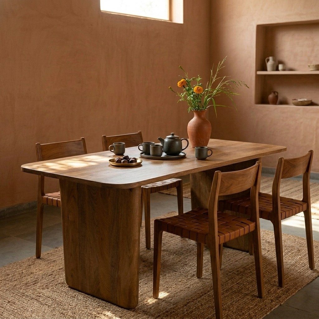 Materials and Finish: Crafted from high-quality materials, the PRITI Dining Table is built to offer both durability and visual appeal. Depending on the model, the table may be constructed from premium wood. The wood options highlight the natural grain and texture with finishes ranging from light, natural tones to rich, dark stains, while glass or metal versions provide a sleek, modern look. The finish is designed to enhance the table’s beauty while ensuring ease of maintenance and longevity.