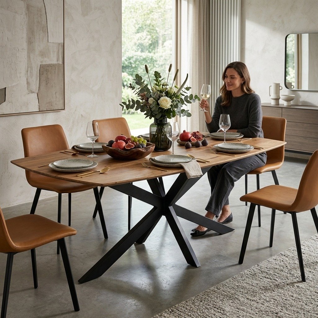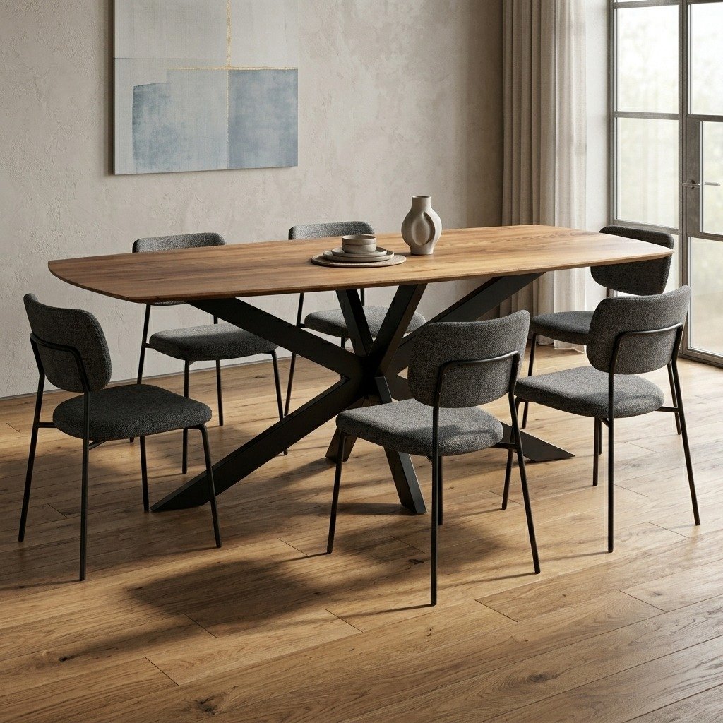 The tabletop of the PRITI Dining Table (Solid Wood) is spacious and smooth, providing ample room for meals, gatherings, and everyday use. Its surface is made from high-quality materials that are easy to clean and maintain, making it practical for busy households. The table’s design is minimalist, with a focus on simplicity and elegance, allowing it to blend seamlessly with a variety of interior styles, from modern and industrial to Scandinavian and transitional.
