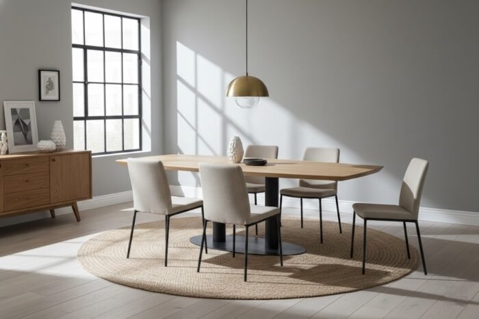 The PRITI Dining Table’s robust construction guarantees durability, while its generous size allows for comfortable seating. It is designed to accommodate family gatherings and dinner parties, creating a welcoming atmosphere for shared meals and conversations.