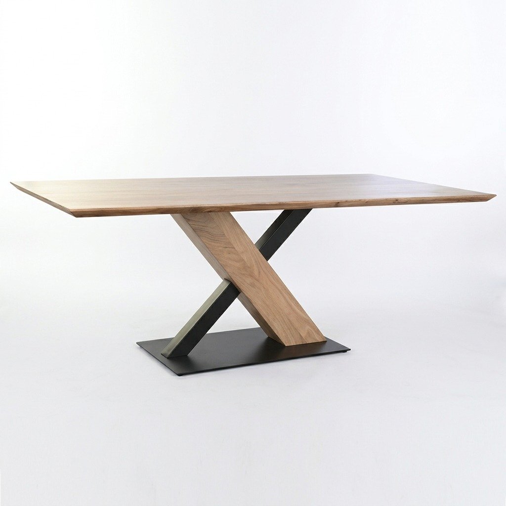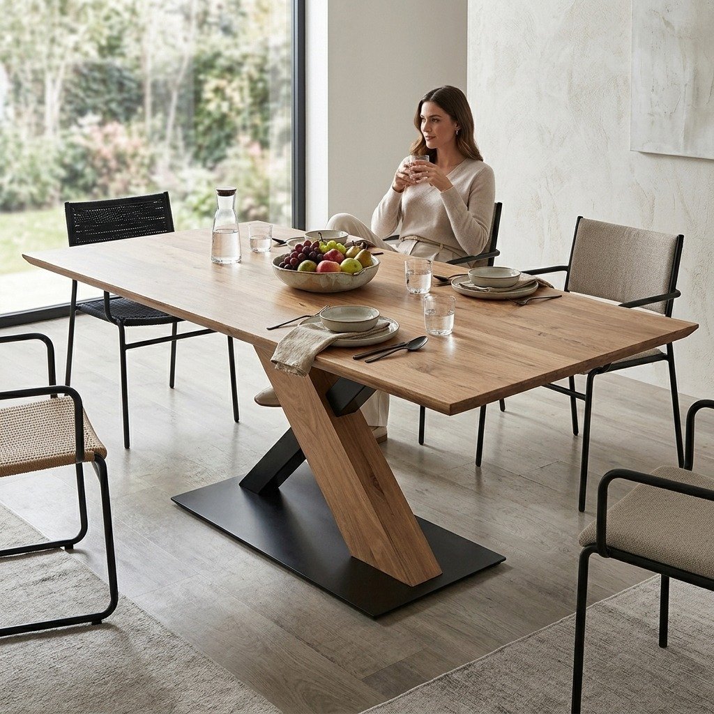 PRITI Industrial Dining Table in Solid Wood and Black Metal