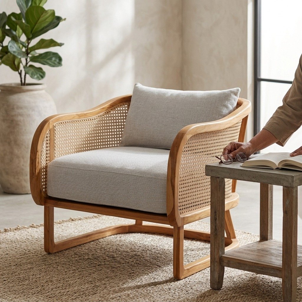 - Material Quality: The natural wood frame, cane weave, and high-quality cushions are selected for their durability and longevity. The finishes and construction ensure that the chair maintains its aesthetic appeal and functionality over time.