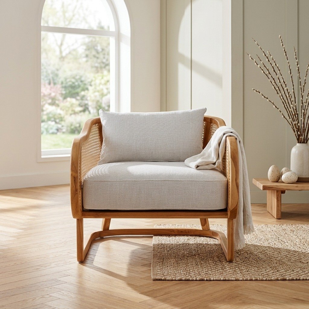 - Cushions: The chair is equipped with thick, neutral-colored cushions, providing extra comfort and support. The neutral color of the cushions allows the chair to blend seamlessly with various decor styles.
