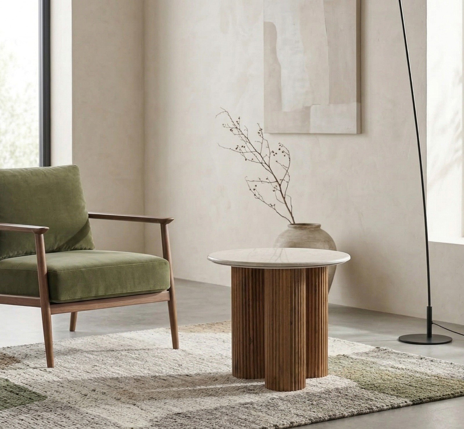 This end table is crafted from premium materials, combining the durability of a solid marble top with a robust base. The marble surface not only adds a luxurious touch but is also highly durable and resistant to heat and scratches, making it ideal for daily use. The base is constructed from either solid wood or metal, depending on the model, providing a stable foundation that supports the weight of the marble. The construction emphasizes quality and longevity, ensuring that the table will remain a functional and stylish part of your home for years to come.