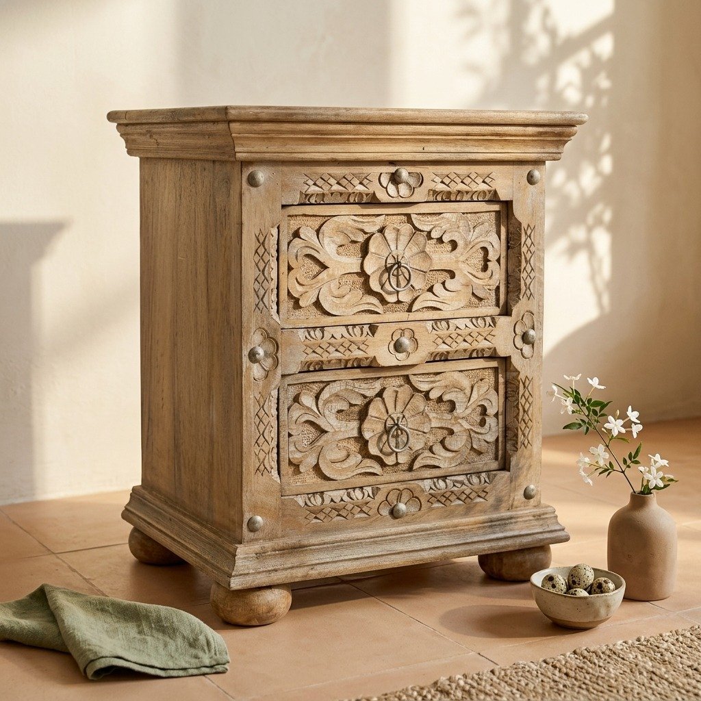 The PRITI Handicraft Nightstand House Living Brown Wood combines functionality with a sophisticated design, making it a valuable addition to any bedroom. Its rich brown finish and versatile design allow it to complement various decor styles, from traditional and modern to rustic and eclectic. With its durable construction, practical storage, and elegant appearance, this nightstand is not only a functional piece but also a stylish enhancement to your home decor.