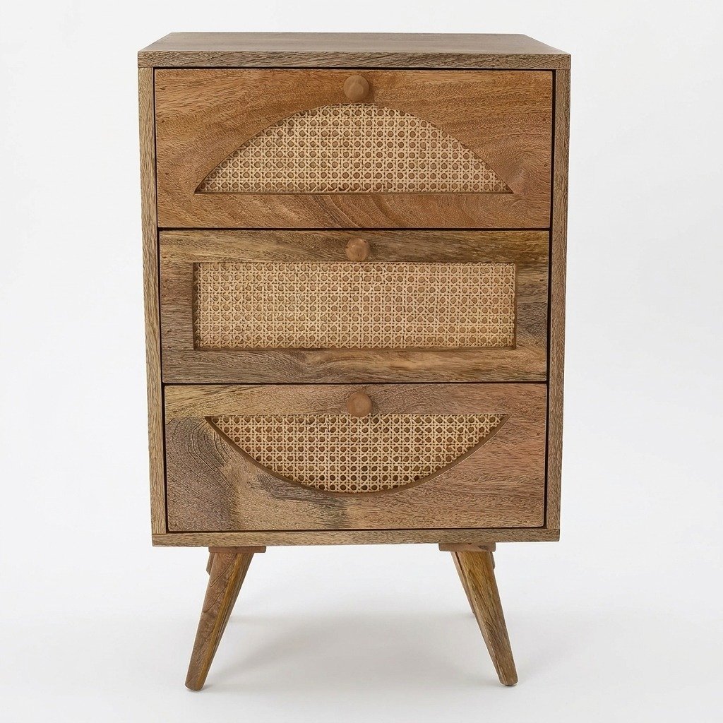 PRITI Wooden Rattan 3-Drawer Side Table (Solid Wood )