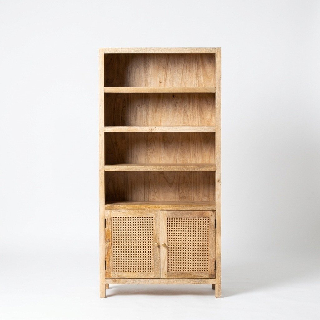 - Rattan Detailing: The inclusion of rattan elements adds a touch of natural charm and texture to the design. The rattan accents provide a visually appealing contrast to the solid wood, enhancing the overall style of the bookshelves.