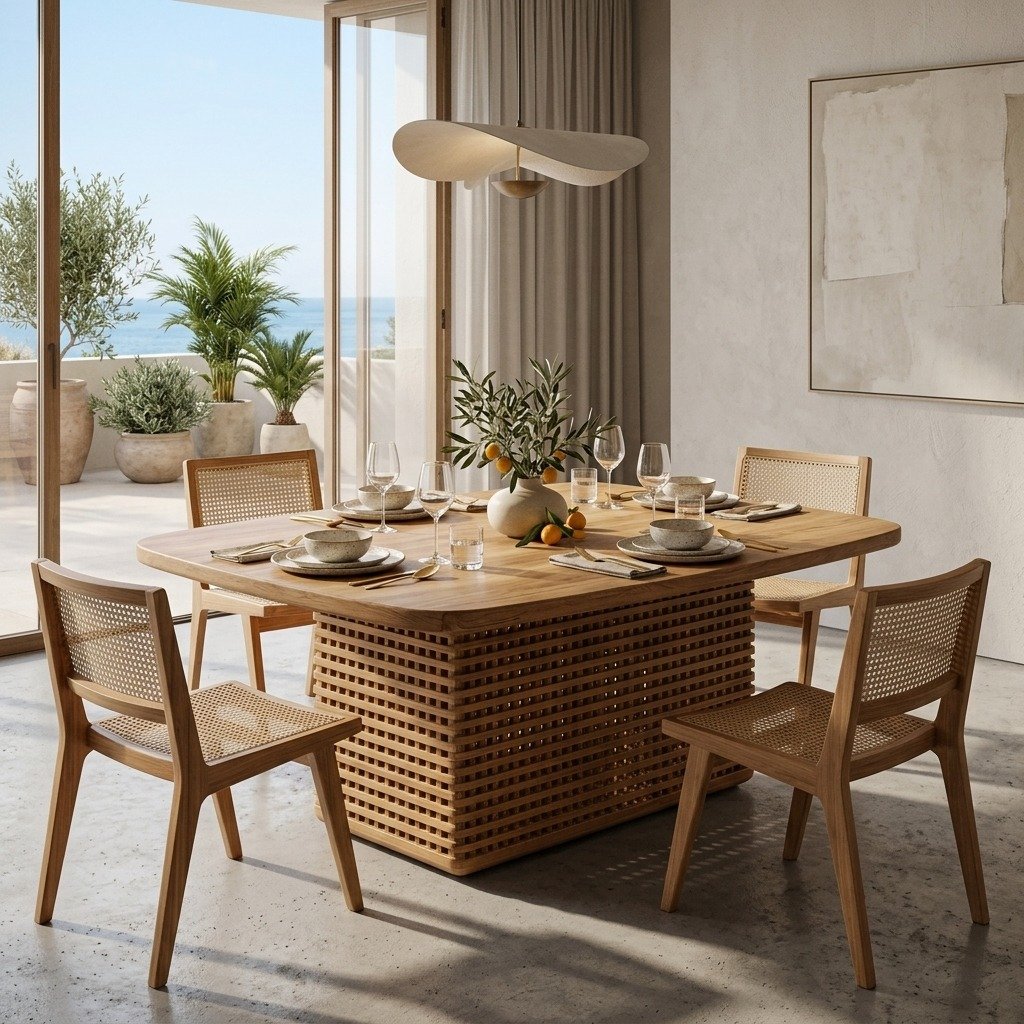 To protect your investment and maintain its pristine condition, we strongly recommend using custom-fit outdoor covers. The PRITI Rectangular Dining Table (Solid Wood with cane ) combines elegant design with exceptional durability, making it a perfect centerpiece for both intimate gatherings and large celebrations in your outdoor space.PRITI Rectangular Dining Table (Solid Wood with cane )