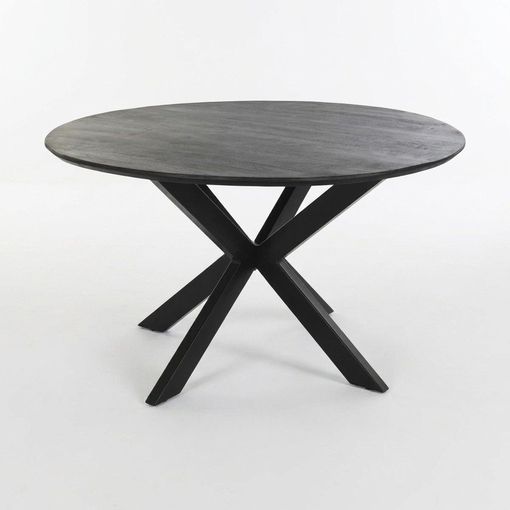 PRITI Round Dining Table in Wood and Black Metal Legs