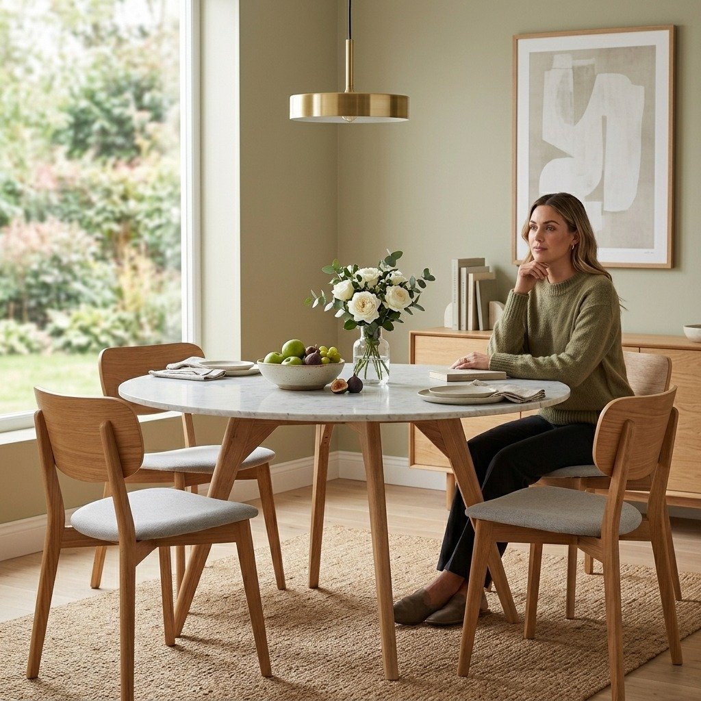 - Functionality: The round shape makes this table ideal for fostering conversation and communal dining, offering an intimate setting where everyone is equally involved. Its compact size is also well-suited for apartments or smaller dining rooms.