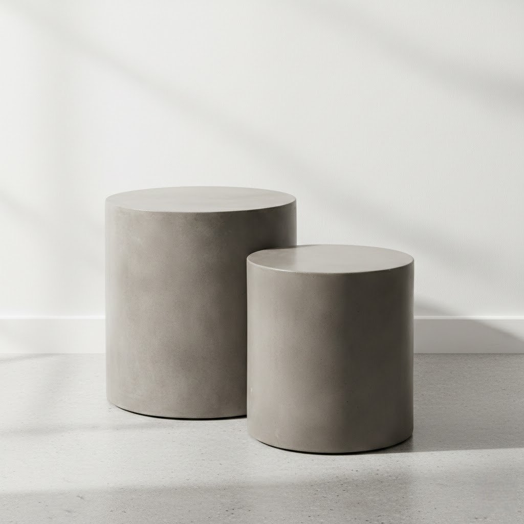 Enhance your outdoor decor with the PRITI Una Concrete Round Garden Stools, a set of two stylish and practical cylindrical pedestals. Crafted from durable, fiber-reinforced concrete, this set includes one tall and one shorter stool, offering a range of uses—from display pedestals and end tables to extra seating. These modern stools bring both function and elegance to any outdoor space, ideal for patios, gardens, or balconies.