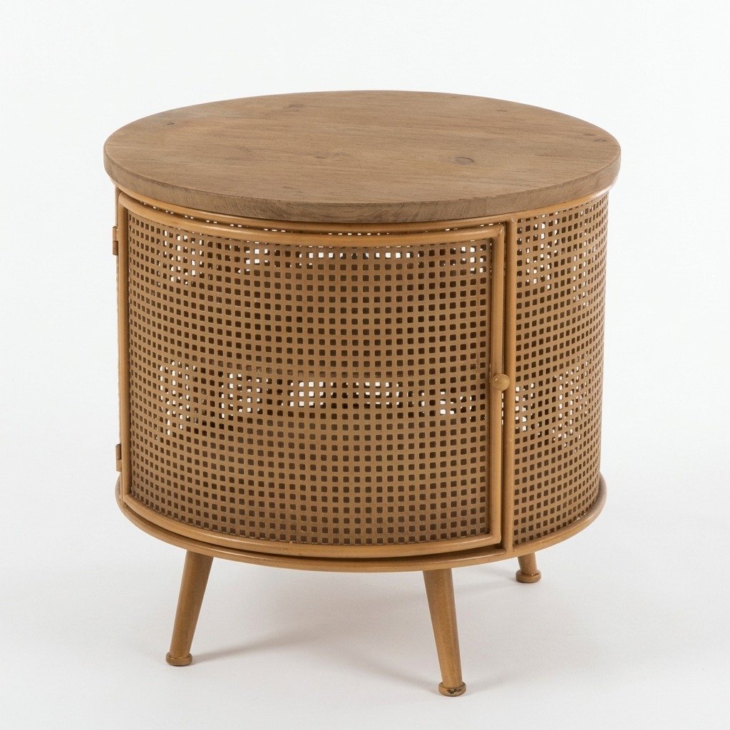 Elegant & Simple Design: Inspired by Scandinavian aesthetics, this round rattan side table combines natural wood with a clean, modern look.