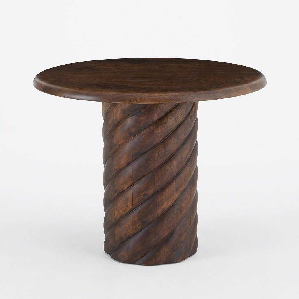 The PRITI Coffee Table stands out with its beautifully carved base, offering both stability and style in equal measure. The twisted motif on the base creates a dynamic visual element, making this table a true statement piece. Its waxed finish not only enhances the natural beauty of the wood but also provides protection for durability and easy maintenance.