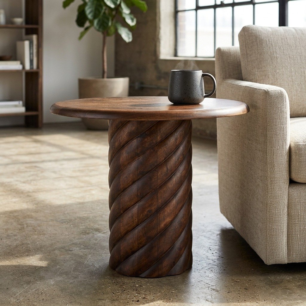 Add a touch of sophistication to your living space with the elegant PRITI Round Coffee Table. Crafted from high-quality wood and finished with a luxurious waxed surface, this piece perfectly balances timeless design and modern functionality. The table features a striking round base, adorned with a decorative twisted pattern that brings a unique and artistic flair to your interior.