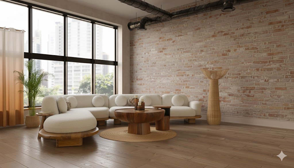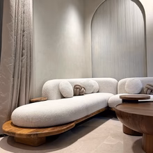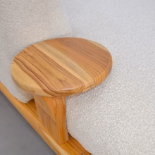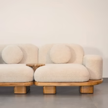 The Priti sectional sofa is rooted in fluid form and sculptural elegance, bringing a sense of movement and softness to any living space. Designed for modern homes that value both comfort and aesthetics, this stunning sectional features plush, rounded contours wrapped in luxurious boucle fabric, offering an inviting tactile experience. The solid teak wood base grounds the design, adding warmth, stability, and natural character while beautifully contrasting with the soft upholstery. Priti sectional sofa