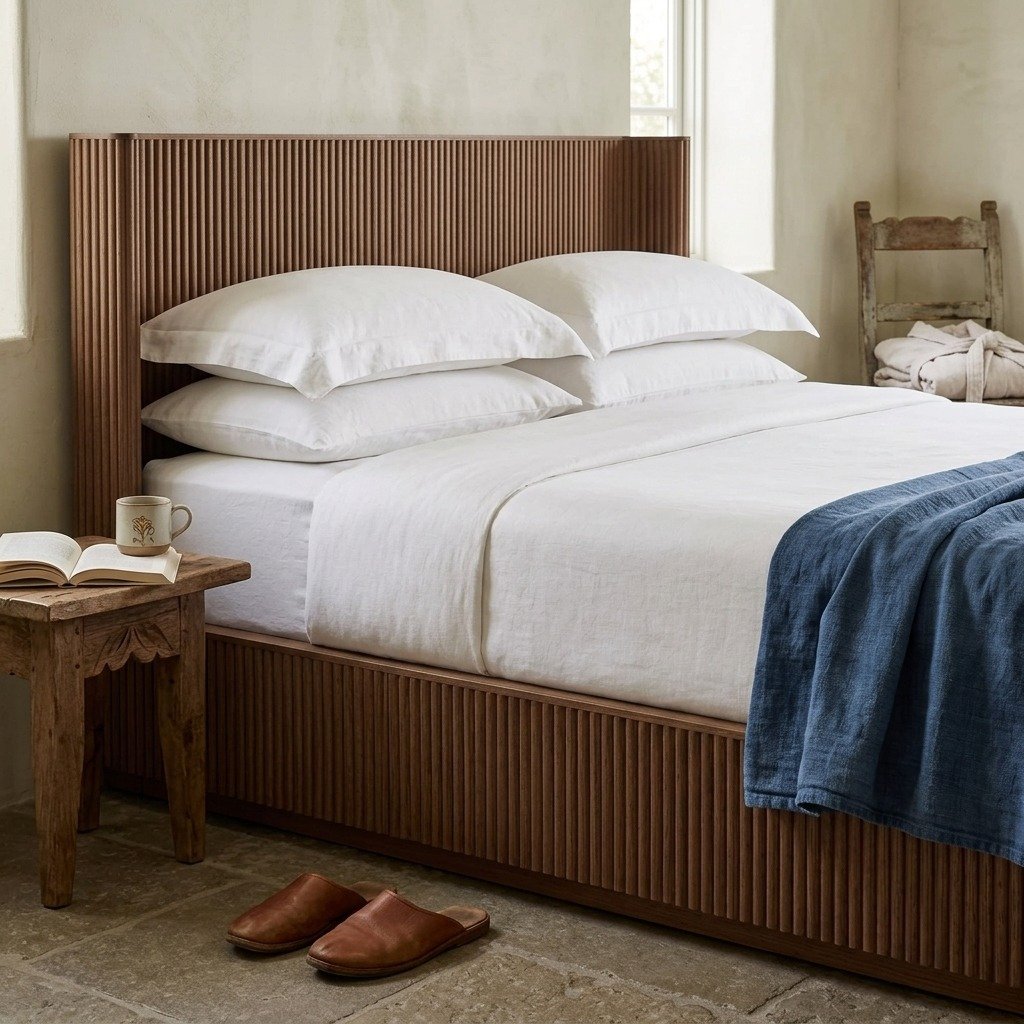 Transform your bedroom into a sanctuary of comfort and elegance with the PRITI Shelter Bed (Solid Wood), where timeless design meets artisan craftsmanship.