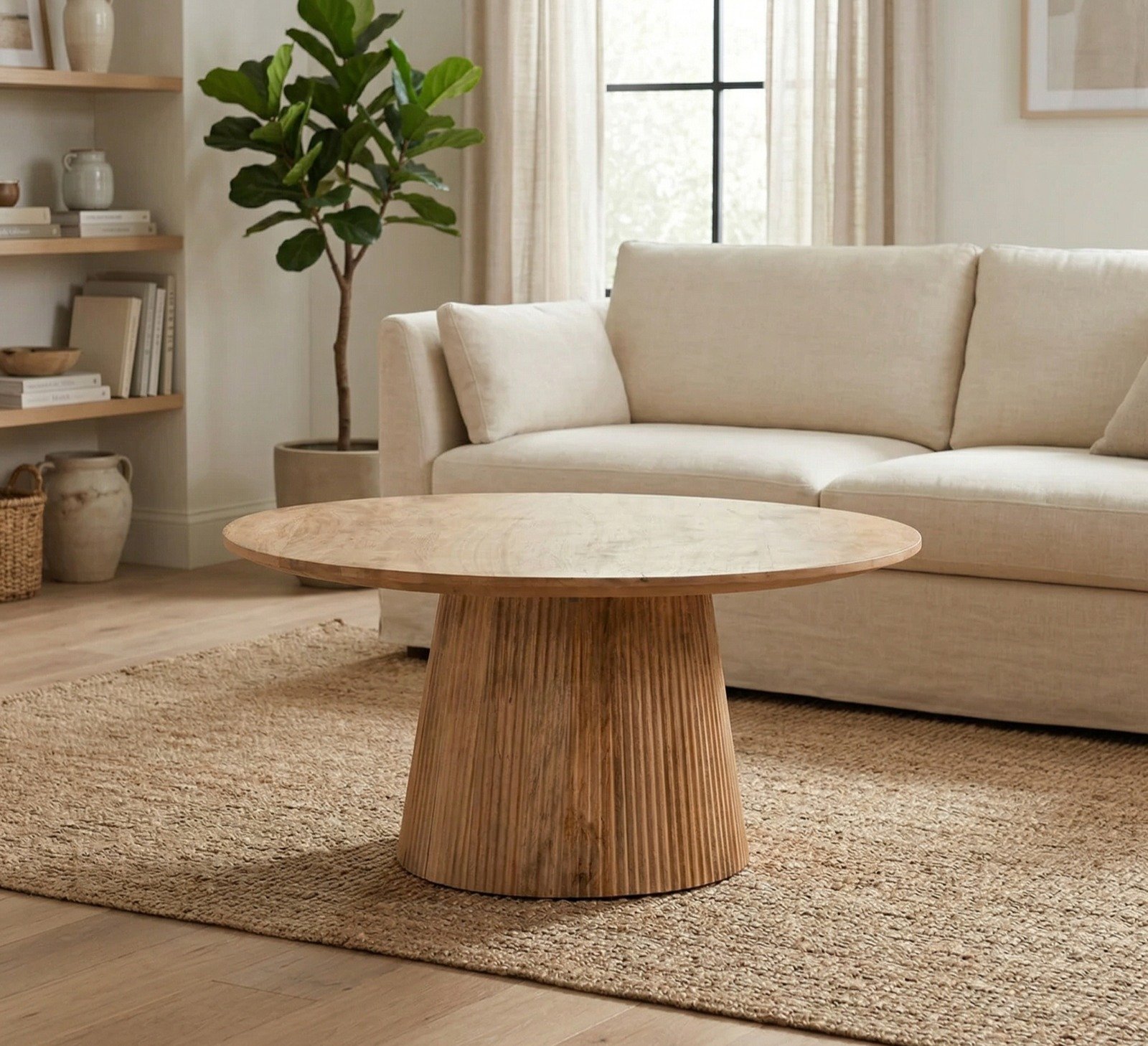 The table’s base is designed with half-round slats, adding texture and depth to its overall look. This design detail brings a touch of rustic charm while maintaining the sophisticated, minimalist aesthetic typical of Scandinavian furniture. The combination of natural materials and refined craftsmanship ensures the PRITI Side Table exudes both style and functionality.