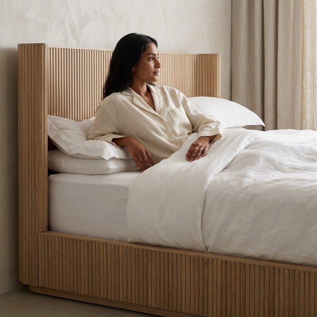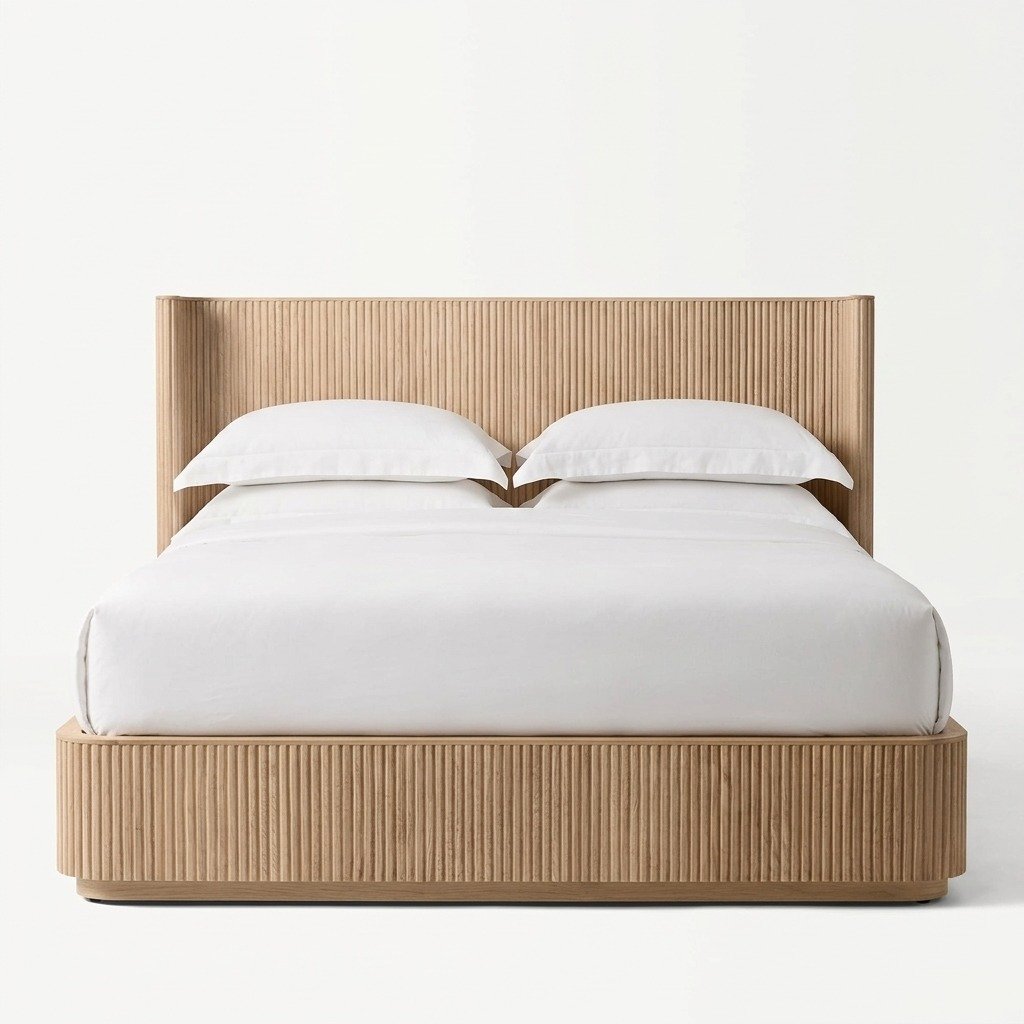 The Shelter Bed is beautifully accented with vertical reeding, adding texture and visual interest to the design. The back of the bed is finished to match the front, allowing for versatile room placement; whether you want to position it against a wall or as a centerpiece in the middle of the room, this bed adapts effortlessly to your space.