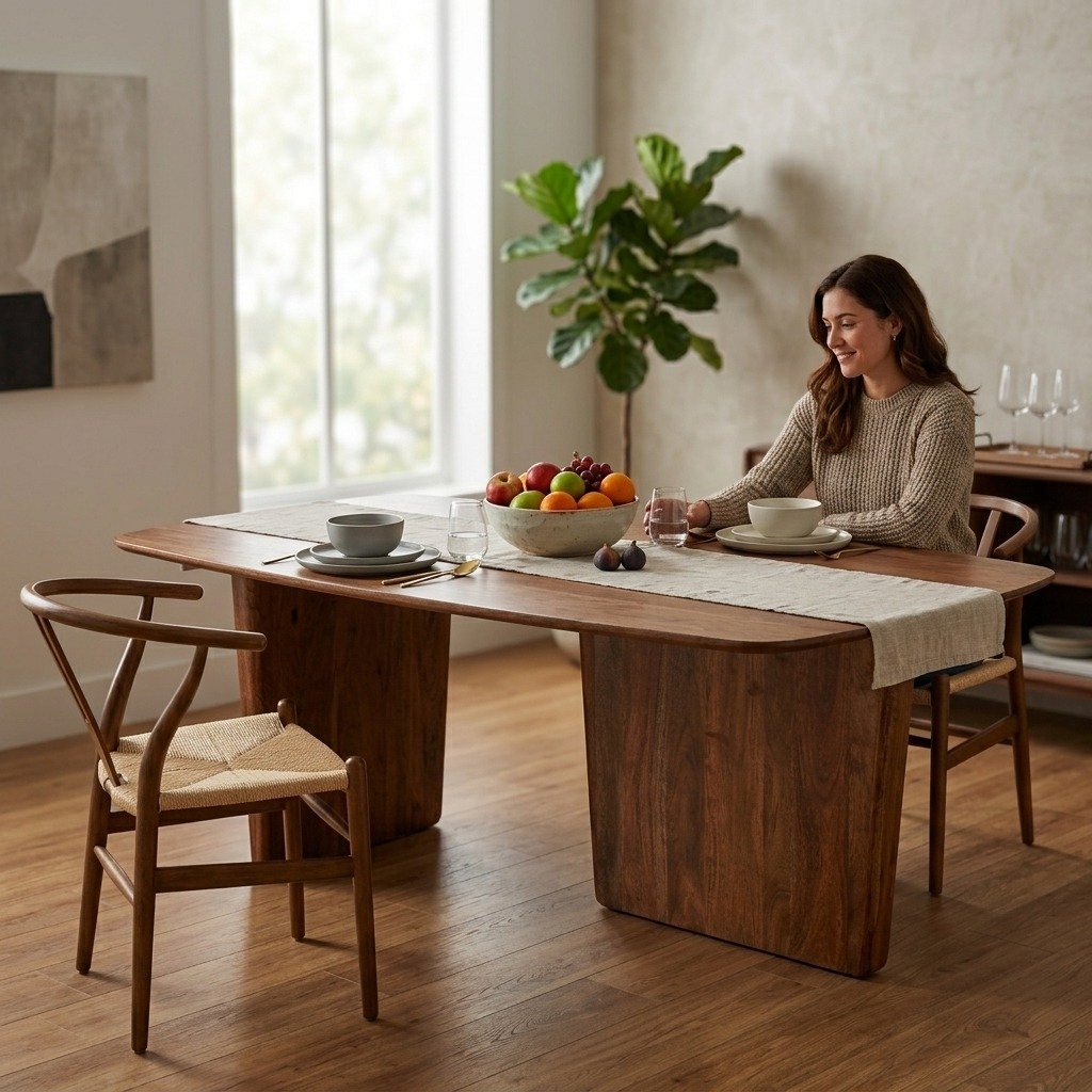 The PRITI Solid Wood Dining Table 32 effortlessly combines mid-century style with organic beauty, making it a standout addition to your dining room. With its round, curved design, this table invites conversation and connection, embodying both elegance and modern appeal. Crafted from solid wood, it offers not only aesthetic charm but also exceptional durability, ensuring it remains a timeless piece in your home.