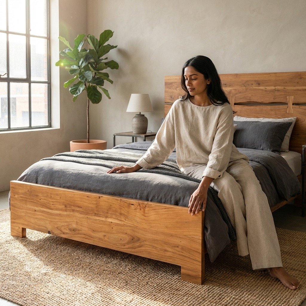 • Style: The PRITI Solid Wood Standard Bed (Sisam Wood ) embraces a minimalist and contemporary design. Its natural wood finish and clean lines make it versatile enough to fit into modern, Scandinavian, rustic, or traditional bedrooms. The focus on natural materials and simple elegance makes it a timeless piece that can adapt to changing decor trends.