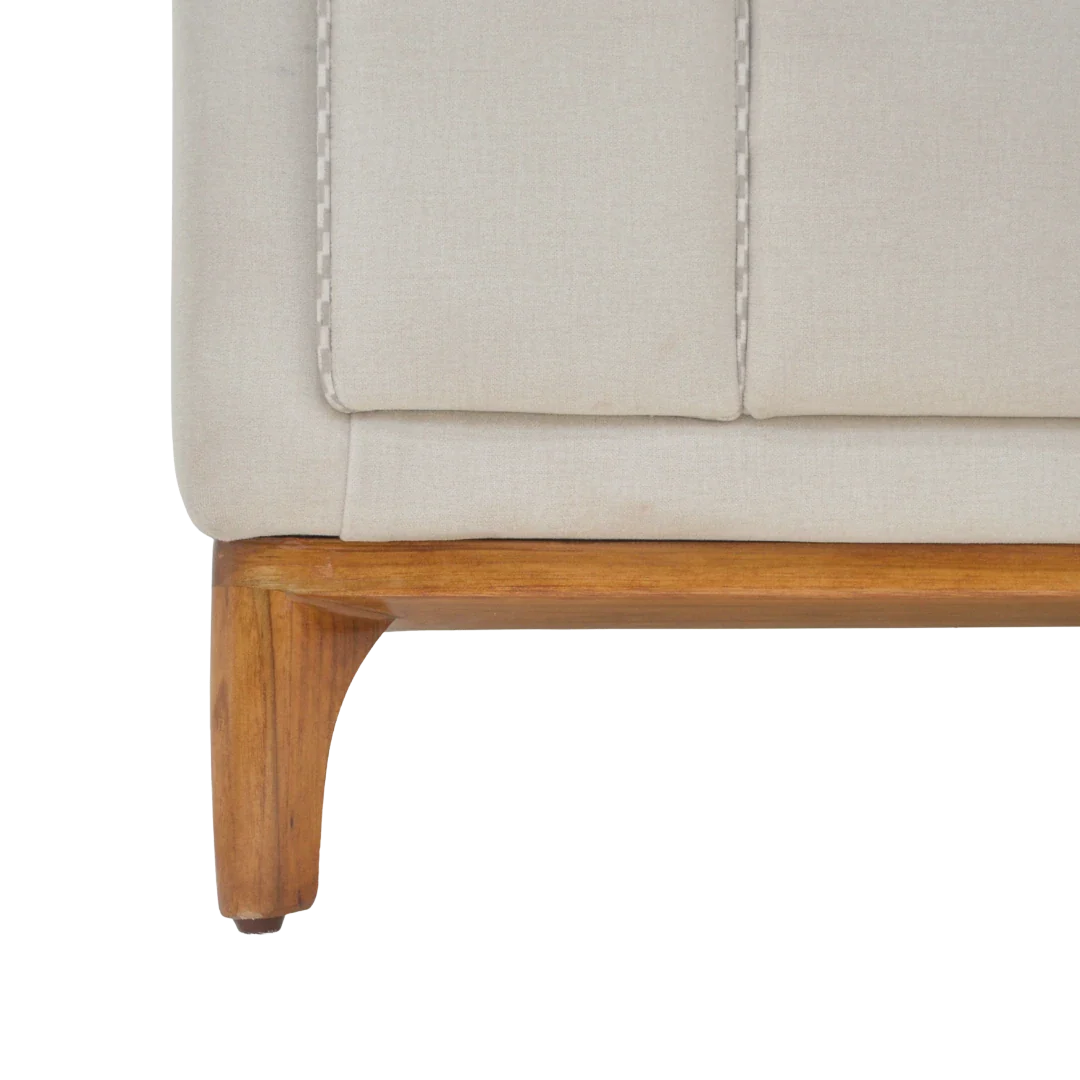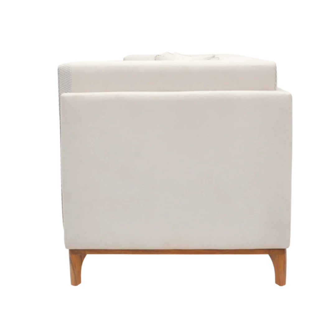 Teak wood is known for its strength, durability, and rich natural grain, making the Priti teak wood sofa a long-lasting investment piece. Its sturdy frame ensures structural stability, while the plush cushions (included) provide generous comfort and support. The combination of soft upholstery and a warm wooden base brings balance to the room, creating a cozy yet refined atmosphere.